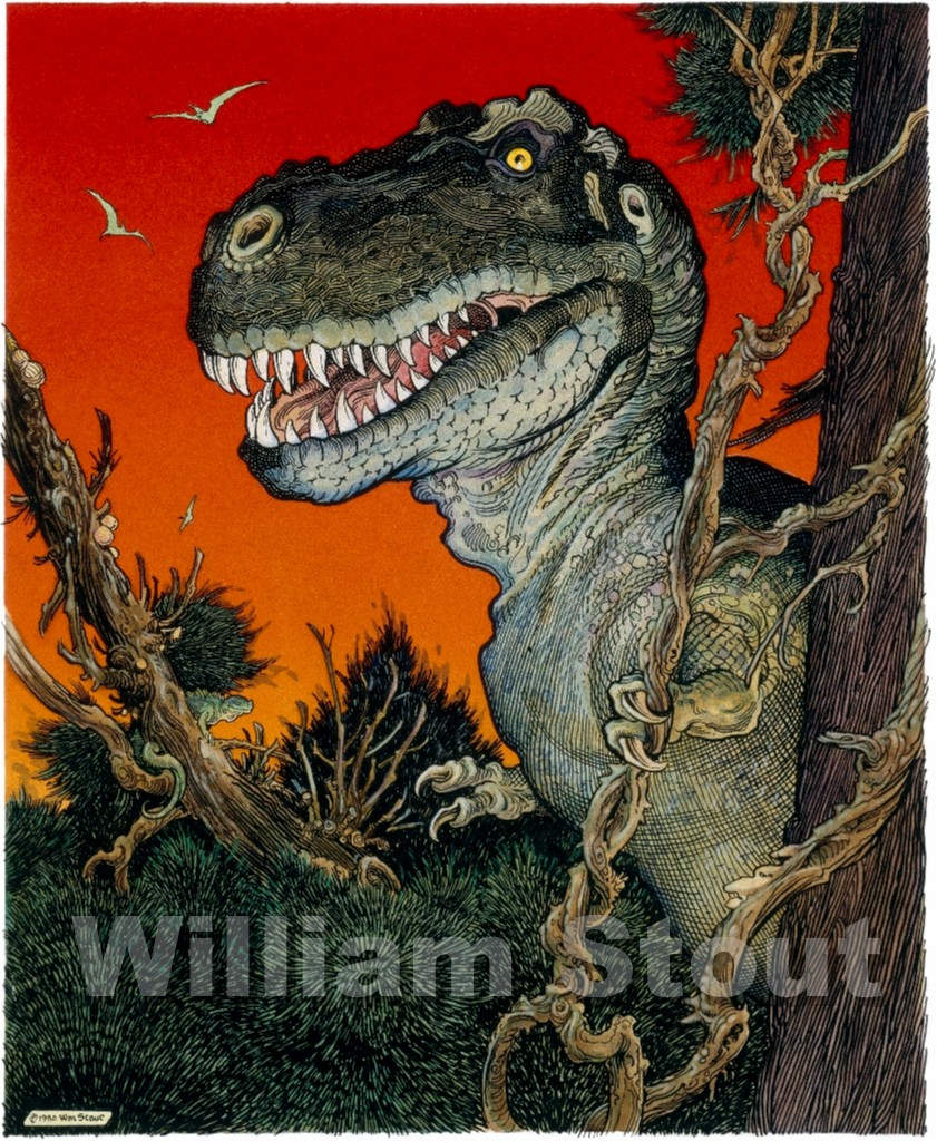 - William Stout's promotional poster for the "Dinosaurs Foever! Blu-ray release.
